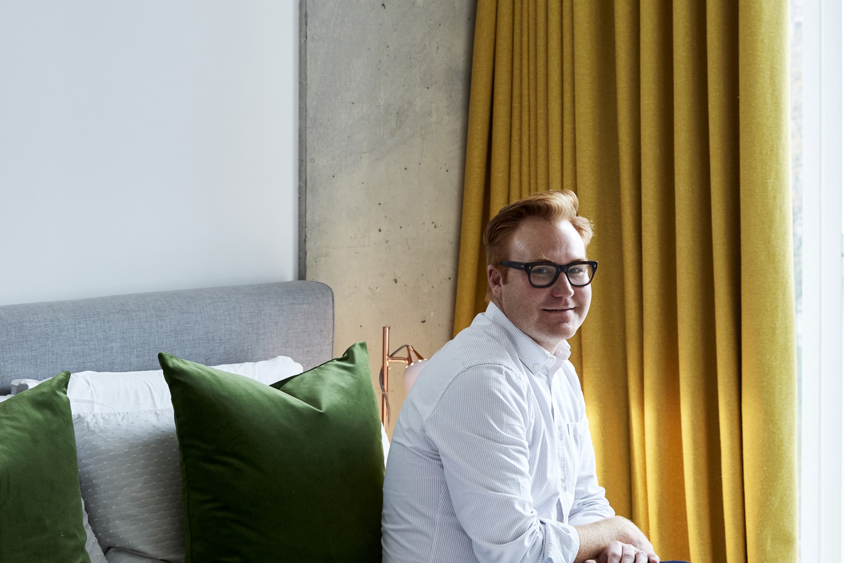 Dave chose Upcycled Silk in Empire Yellow for his bedroom curtains and blinds.